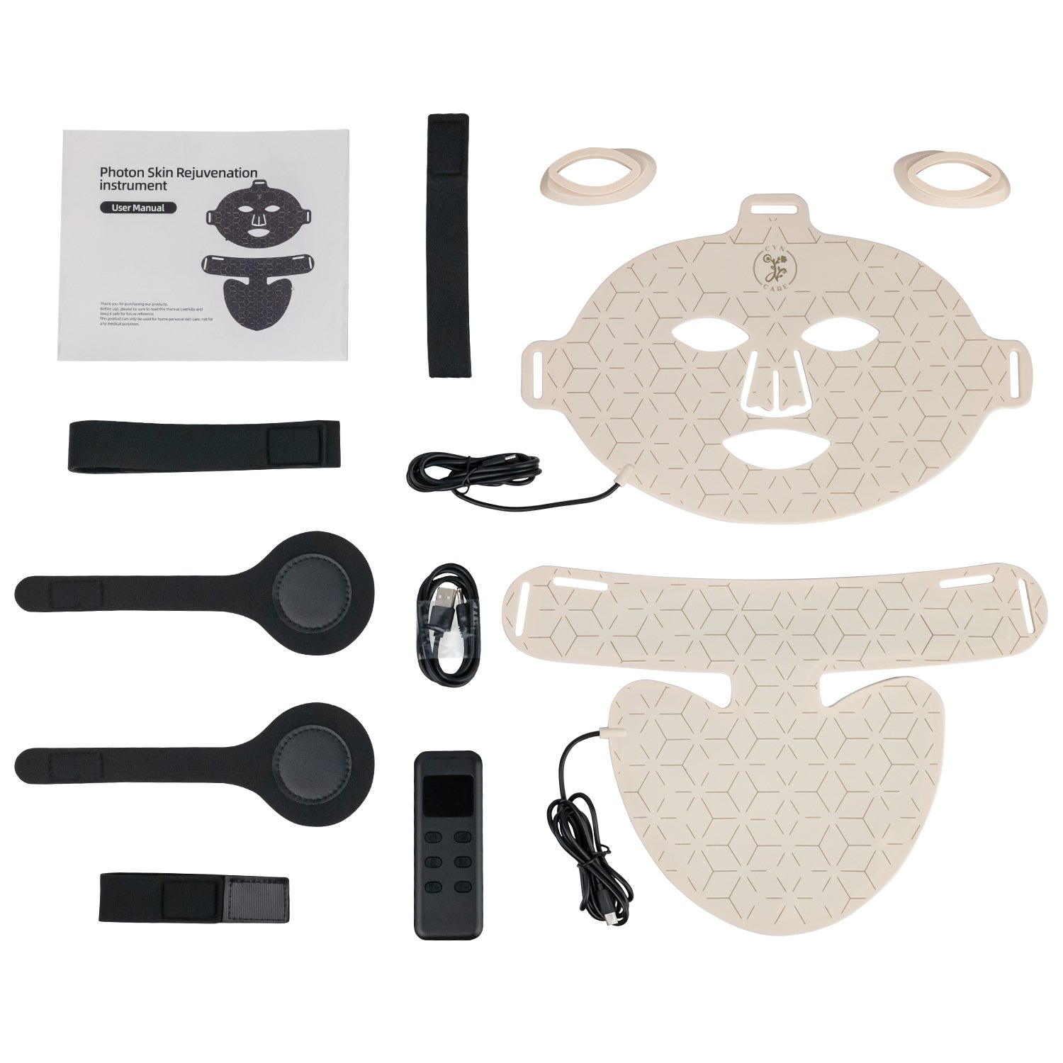 This advanced LED mask photon light skin rejuvenation system includes both a face mask and neck therapy device, featuring 1,440 high-quality LED lamp beads that emit 8 light colors (Red, Blue, Yellow, Green, Purple, Orange, Near-Infrared, and Cyan Blue Light). Each wavelength delivers unique skin care benefits - from reducing acne and fine lines to boosting collagen and soothing inflammation.